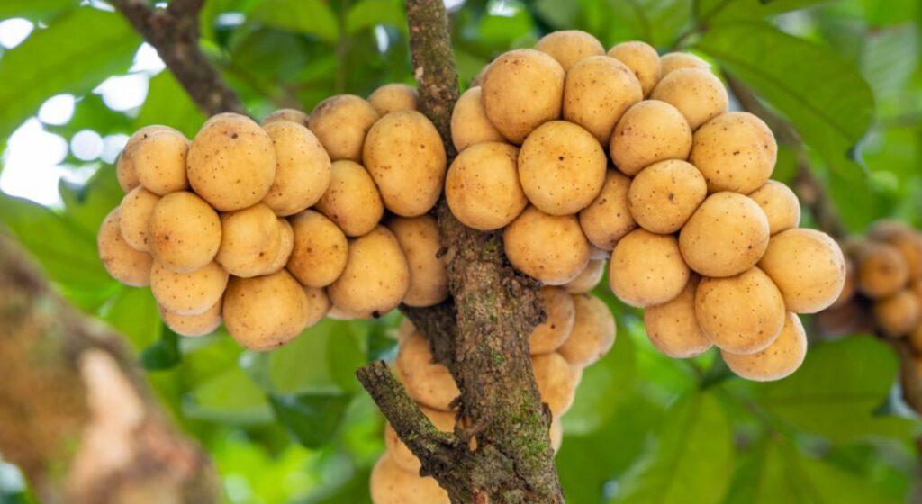 The ripening process of the langsat is marked by a distinct color change in the fruit’s skin. While the fruit is young, its skin is pale green, gradually turning yellow as it ripens. The skin is smooth and thin, with a slightly waxy texture that not only protects the flesh but also helps retain the fruit’s freshness when exposed to air. Langsat fruits are spherical, with diameters ranging from 2 to 5 cm, and grow in clusters along the trunk and branches.